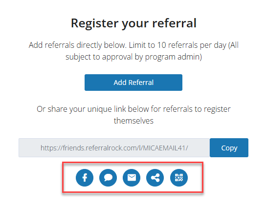 Previously, the Direct Add share widget only included an add referral button and a share link. Now we've included more sharing options across social, email, QR codes, etc.